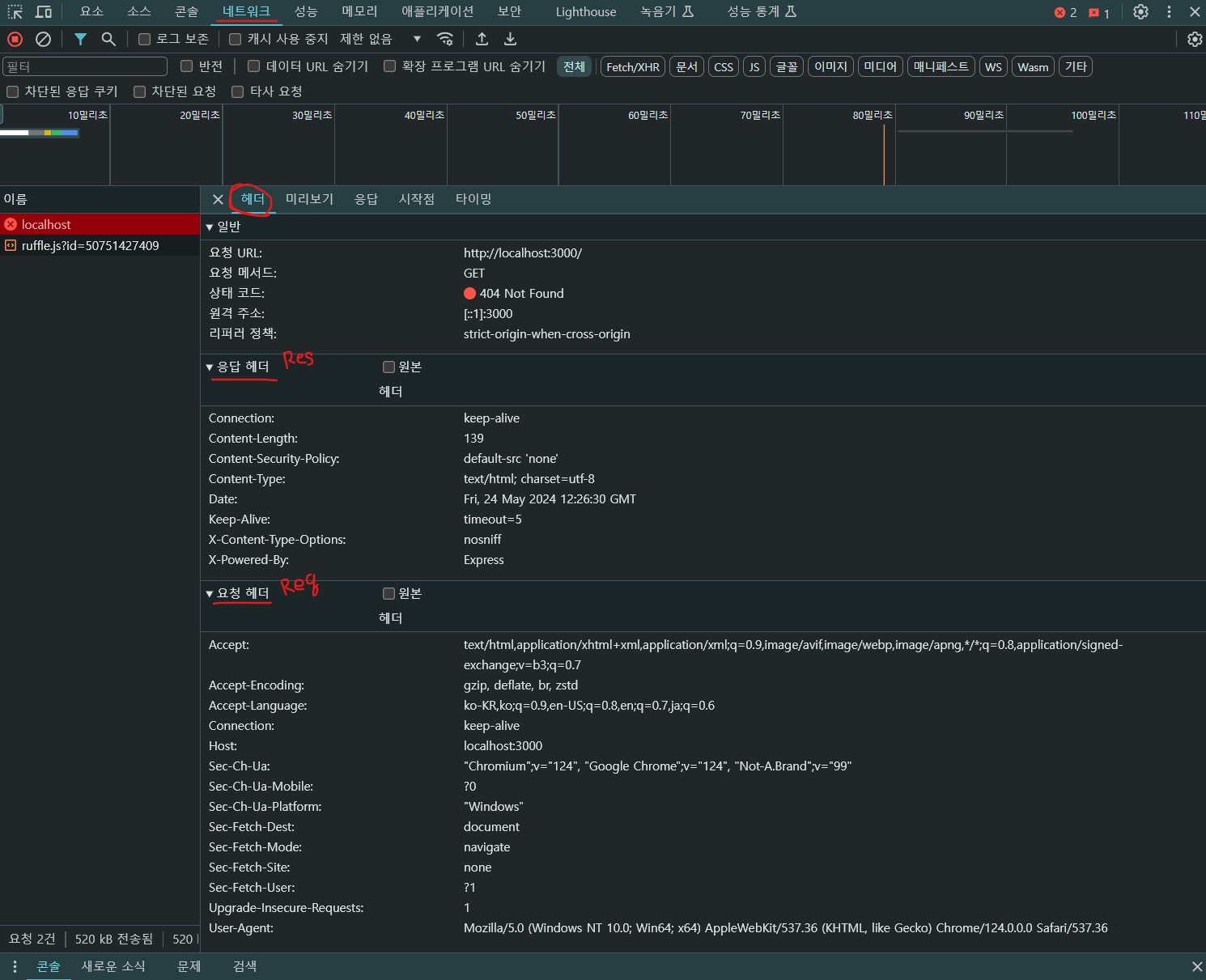 - 현재 페이지를 클릭해서 들어가서 헤더를 확인한다
