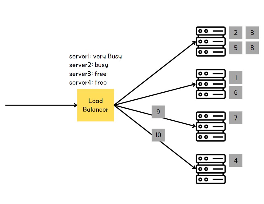 로드 밸런서가 서버의 상태를 확인하고 연결이 적은 서버에게 분배하는 방식입니다. 위의 두 방식(라운드 로빈, 랜덤 셀렉트)은 서버의 상태를 확인하지 않았지만 최소 연결 방식은 서버의 현재 상태를 확인하기 때문에 보다 똑똑한 방식이라고 할 수 있습니다.