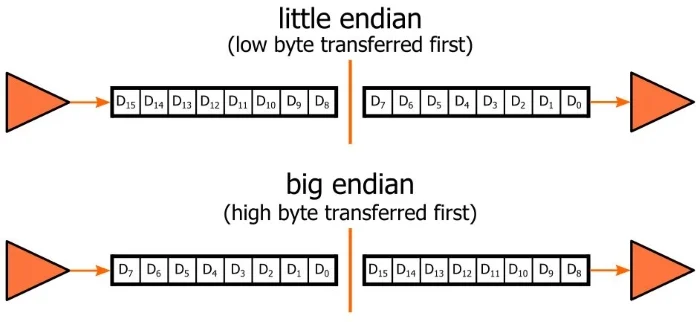 값을 표현할 때 가장 큰 값부터 차례대로 표현하니 데이터를 저장할 때도 최상위 바이트부터 차례대로 저장할 것 같지만, 시스템이 사용하는 메모리 배열 방식에 따라 그렇지 않을 수도 있다. 즉, 시스템이 사용하는 메모리 배열 방식이 "빅 엔디안"인지, "리틀 엔디안"인지에 따라 저장되는 순서가 달라진다.