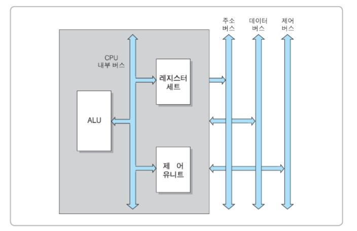 CPU의 기본 구성 요소는 크게 ALU, 레지스터, 제어 장치(또는 제어 유닛) 3가지로 이루어져 있습니다. 이 3가지는 CPU내부에 존재하는 버스를 통해 서로 데이터를 교환하며 연산을 처리하게 됩니다.