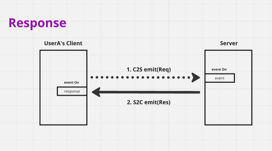 웹소켓은 기본적으로 7계층에서 수행된다. 또한 http와도 연관이 있어, 요청-응답 방식을 사용하고 있다. 웹소켓은 소켓을 통해 이벤트를 emit하면 해당 emit을 수신받은 호스트가 대응하는 이벤트를 수행한다. 따라서, 각 이벤트를 역할에 맞게 수행하도록 수신받는 호스트 소켓에 대응하는 이벤트가 추가되어 있어야한다.
