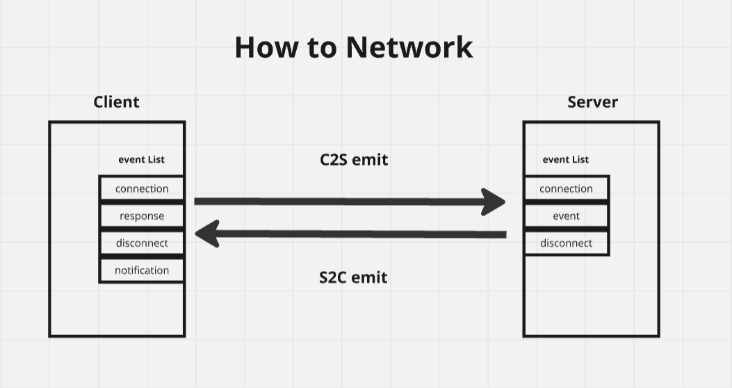 클라이언트-서버 구조에서는 이벤트의 종류가 다르다. 클라이언트는 response와 notification이벤트를 가지고, 서버는 오로지 event(request)만을 가진다. 물론, connection과 disconnect이벤트도 있지만 이는 연결의 시작과 끝에서만 사용하기 때문에 생략하겠다.