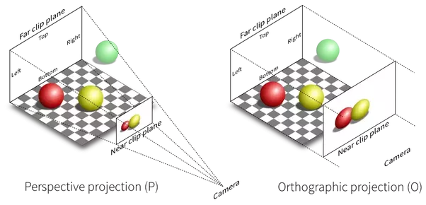 카메라 컴포넌트에는 Projection이라는 속성이 있다. 여기에는 Orthographic과 Perspective가 있는데, Orthographic은 원근법 없는, Perspective는 원근법이 있는 설정이다. 원근법이 있게되면 소실점이 존재하게 되며, z축이 카메라에서 멀어질수록 멀어진 거리에 비례하여 물체가 작게 보인다. 반대로, 원근법이 없게되면 z축과 상관없이 모든 물체가 동일한 크기로 보인다. 2D는 원근법을 적용하지 않기 때문에 Orthographic를 사용하면 된다.