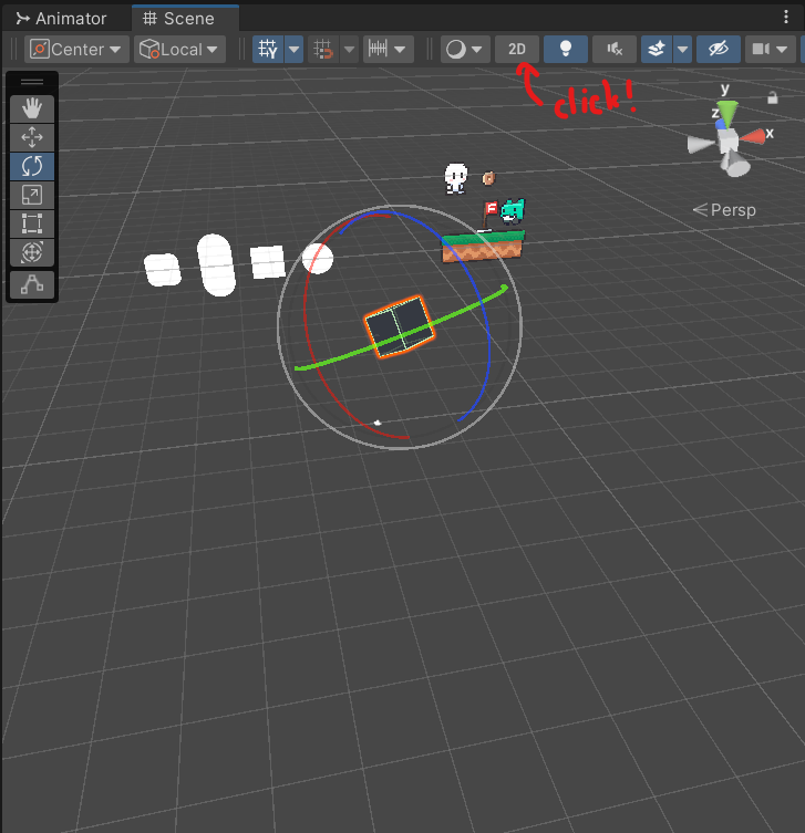 2D템플릿은 z축이 없을거라 생각하는데, 실제로는 아주 잘 존재한다. 아래 그림처럼 2D view를 해제하면 익숙한 3D지형에서 만들어지는 것을 볼 수 있다. 3D환경에서 2D처럼 카메라를 고정했다고 생각하면 된다. 그래서 3D 오브젝트인 큐브도 생성할 수 있다.