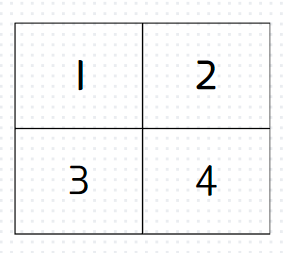 우선, 분할정복 알고리즘을 사용하려면 분할이 되는 코드를 짜야한다. 한 번 분할할때 생기는 영역을 총 4개로 각 영역에 숫자를 붙이면 아래 그림과 같다.