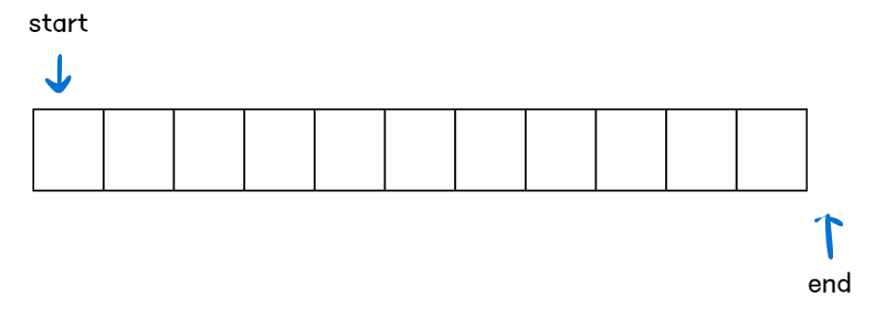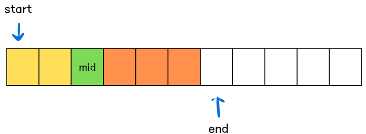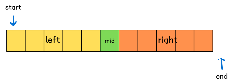 시작은 이진 탐색과 동일하게 start는 배열의 첫번째 위치, end는 배열의 마지막 위치 + 1로 초기화한다.