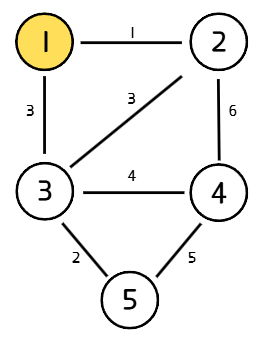 시작점을 선택한다. 시작점은 어떤 정점을 선택해도 상관없지만, 아래 예시에서는 편의상 1번 정점을 선택한다.