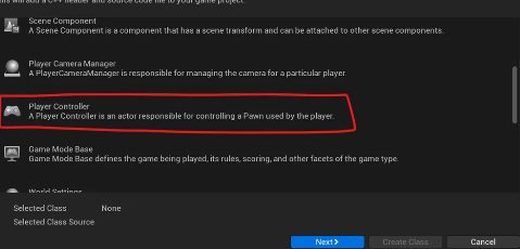 - C++ 클래스 만들 때 목록을 잘 찾아보면 PlayerController가 있을 것이다.