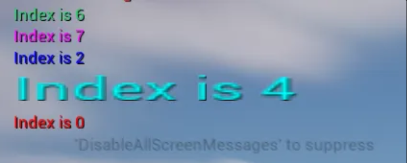 GEngine->AddOnScreenDebugMessage(2, 5.f, FColor::Blue, TEXT("Index is 2"));