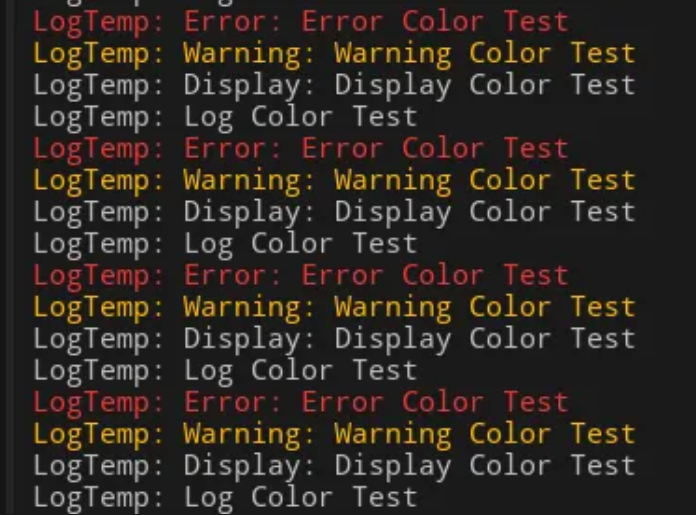 UE_LOG(LogTemp, VeryVerbose, TEXT("VeryVerbose Color Test"));