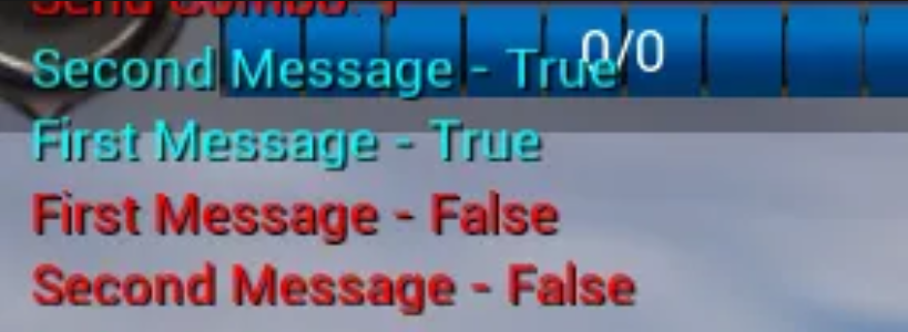 GEngine->AddOnScreenDebugMessage(-1, 5.f, FColor::Cyan, TEXT("Second Message - True"));
