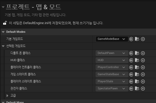 - 게임 모드가 클라이언트와 서버 간 통신에 핵심적인 역할을 하는 만큼, 다양한 클래스 프로퍼티들을 가지고 있게 된다. 이 중에서 에디터로 노출되는 프로퍼티는 위 사진처럼 구성되어 있다.